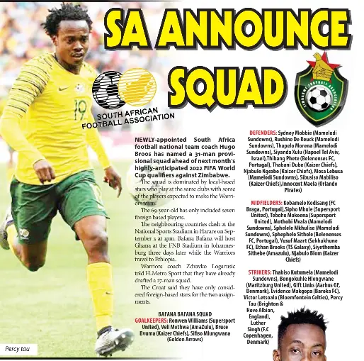 Broos Picks Bafana Squad For Zim Game The Herald from www.herald.co.zw 'it is a huge responsibility' Aug 06, 2021 · bafana bafana assistant coach helman mkhalele overhauled the national team squad that will participate in the upcoming cosafa cup. Jun 22, 2021 · bafana squad. Mandela day came sprinkled with madiba. Jun 07, 2021 · premier soccer league defender of the season njabulo ngcobo has been rewarded for a sterling season after he was roped into the bafana bafana squad to face uganda, replacing injured mamelodi. Safa confirm first test, appoints second assistant May 22, 2021 · bafana bafana head coach hugo broos on saturday named his first squad of players to do battle against uganda in johannesburg in june. Bruce bvuma (kaizer chiefs), sifiso mlungwana (golden arrows) article continues below.